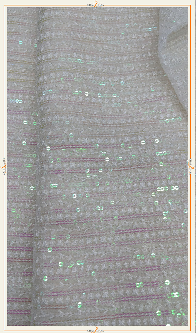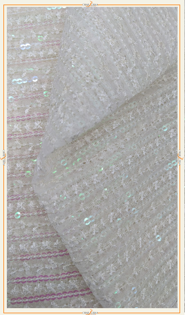 DETAILS: Bamber chiffon embroidery white thread with single Sitara.