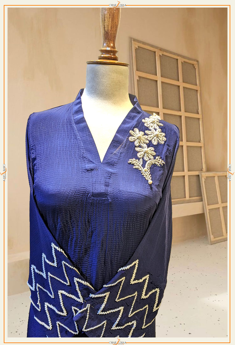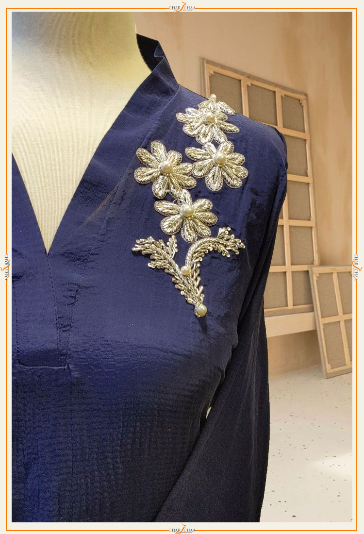Blue color outfit (neck line embellishment and sleeve design with pearl). very gorgeous shirt ready to wear.